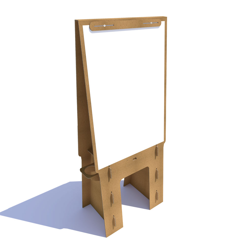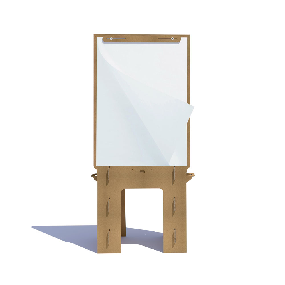 Prevăzut cu un sistem simplu și intuitiv de asamblare, flipchart-ul din carton ecologic îți permite să lucrezi pe ambele fețe.